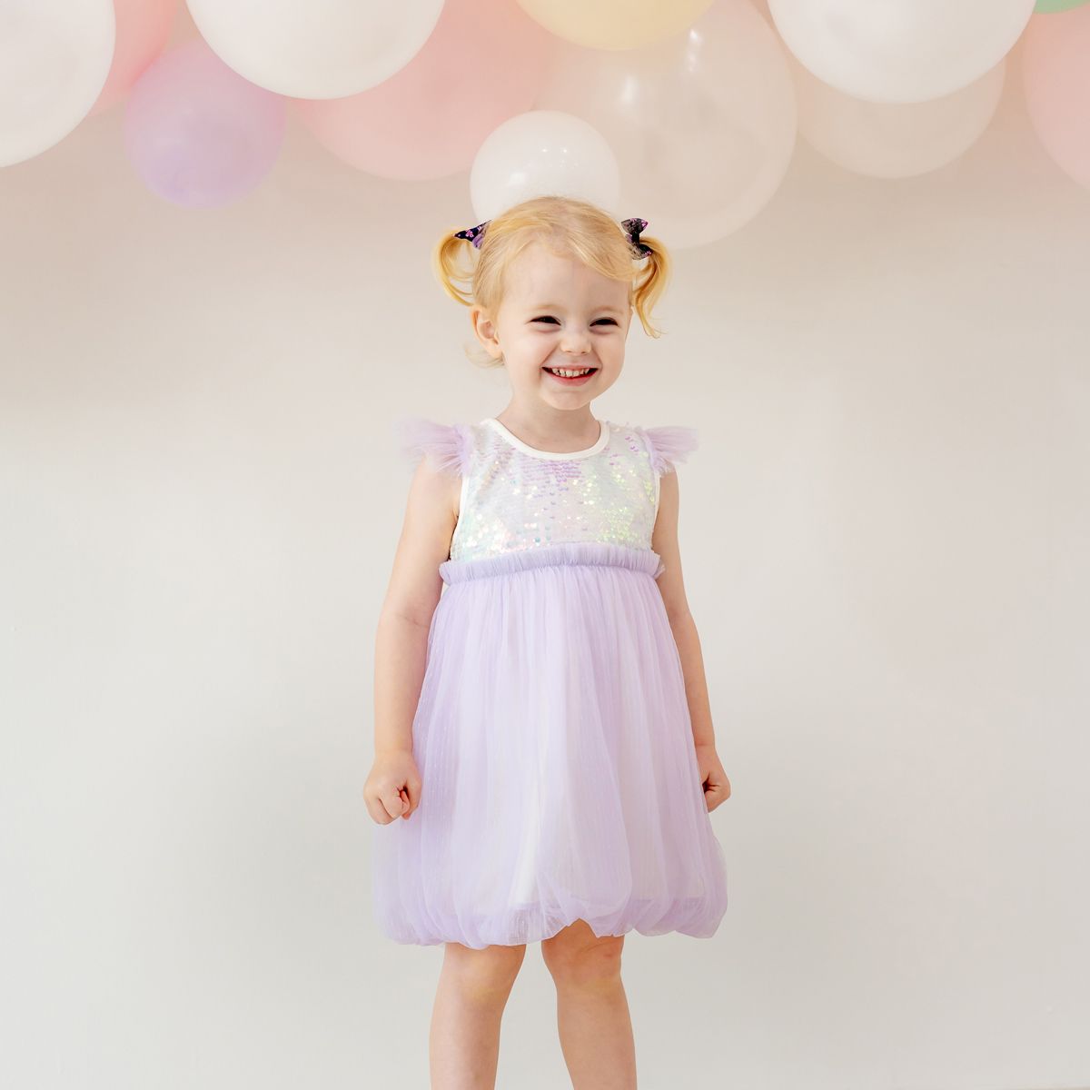 Make every celebration shine with the Flower Girl Series Sequin Mini Bubble Dress in Lilac—a dazzling addition to our latest bubble dress collection. Designed in a shorter length for a playful twist, this dress is perfect for birthdays, weddings, parties, and all of life’s joyful moments.