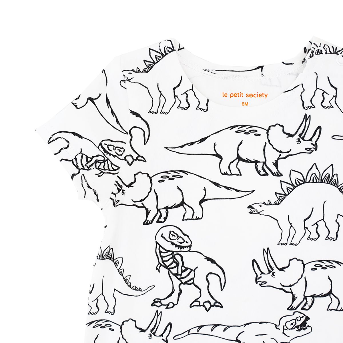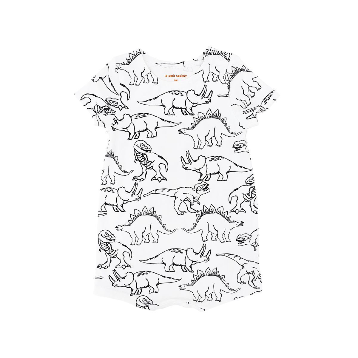 Prepare your little one for fun-filled adventures with the Made for Play Baby Romper in Dino Sketch Print (White). Designed with both comfort and style in mind, this monochrome romper features an all-over dinosaur sketch print, making it perfect for curious explorers and dinosaur lovers.
