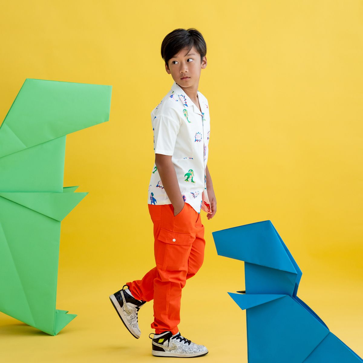 Step up your little adventurer’s wardrobe with the Made for Play Boys Contrast Panel Shirt in T-Rex Print (White). Bursting with fun and energy, this stylish shirt features a vibrant T-Rex print complemented by contrasting panels for a bold, playful look that stands out at parties, playdates, or casual outings.