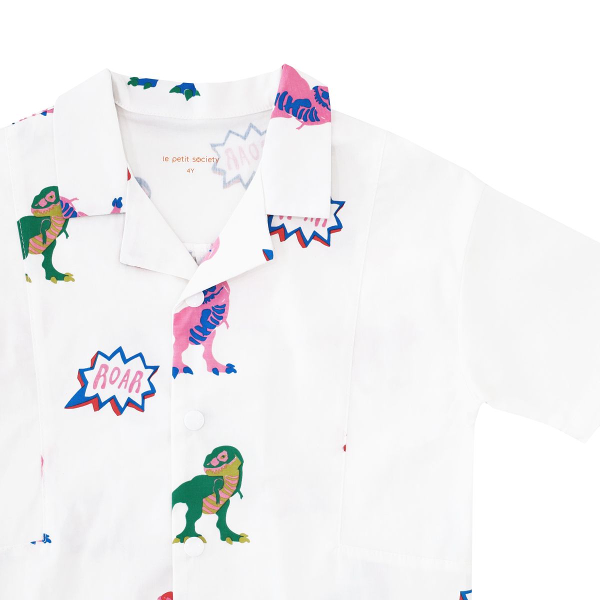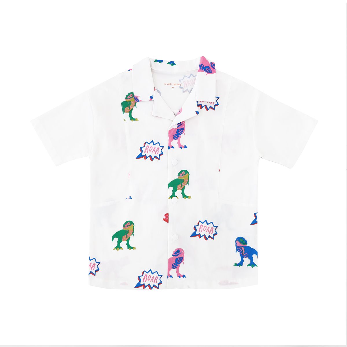 Fun, practical, and full of personality, the Made for Play Boys Contrast Panel Shirt in T-Rex Print (White) is a must-have for young dinosaur enthusiasts who love to play and explore in style.