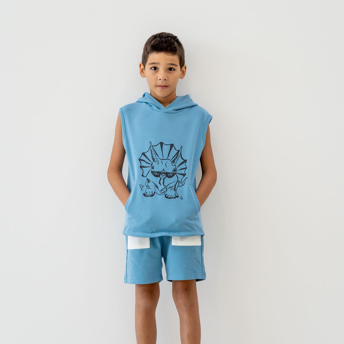 Bring a dash of prehistoric adventure to your little explorer’s wardrobe with the Made for Play Hoodie Tank in Triceratops Print (Blue). This fun and functional sleeveless hoodie is designed for outdoor adventures, playful park days, and casual summer outings, blending style, comfort, and practicality in one go-to piece.