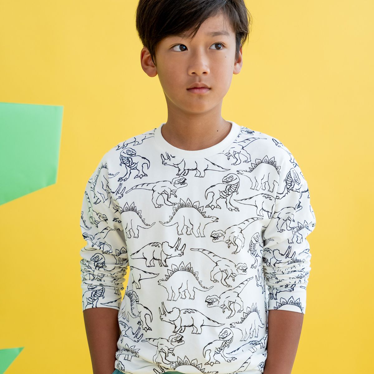 Fun, comfy, and packed with dinosaur charm, the Made for Play Long Sleeves Tee in Dino Sketch Print (White) is a must-have for little explorers ready to learn, play, and discover the world around them.