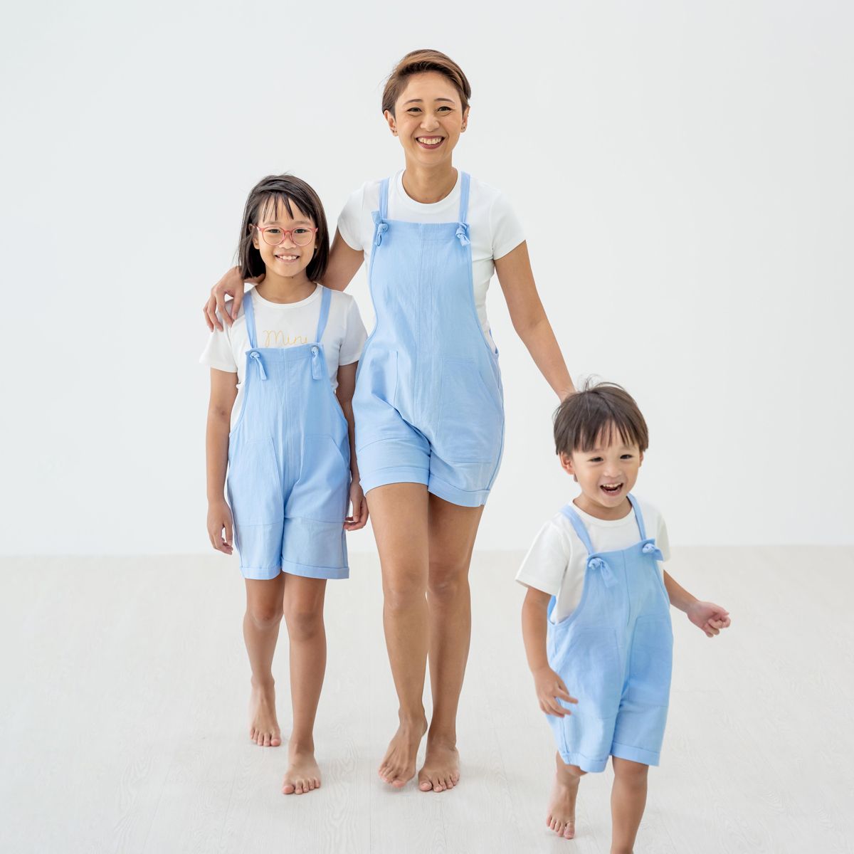The soft pastel blue shade adds a fresh and playful touch that pairs easily with tees or tanks underneath. For an extra-special look, match it with our ladies’ overalls for a sweet Mama & Mini twinning outfit during photoshoots or family gatherings. Also available in long Pastel Purple and long Pastel Green versions, this overall is a versatile and stylish choice for fun-filled days together.
