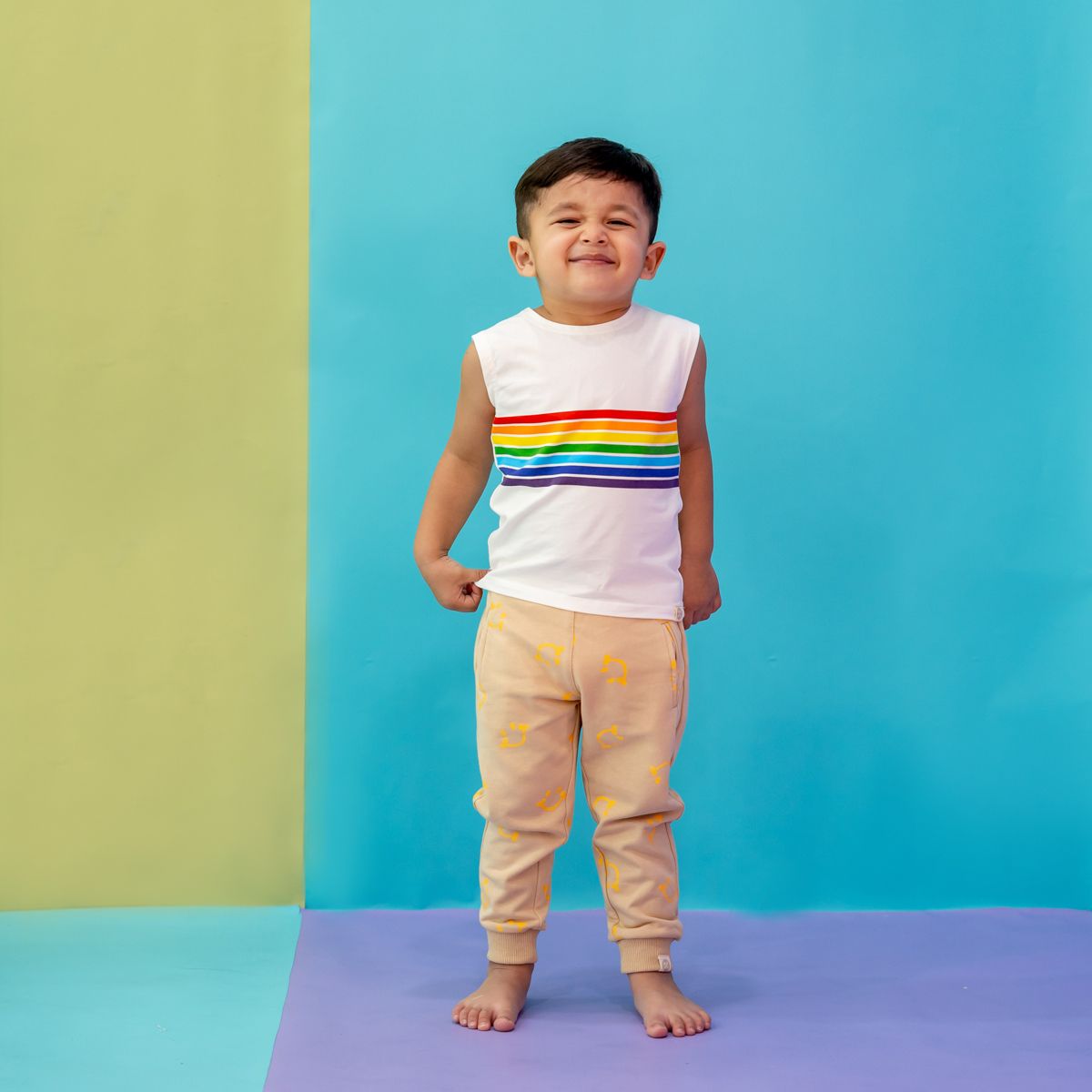 Fun, functional, and thoughtfully made, this rainbow tank is a cheerful essential that combines comfort, colour, and individuality in one happy piece.