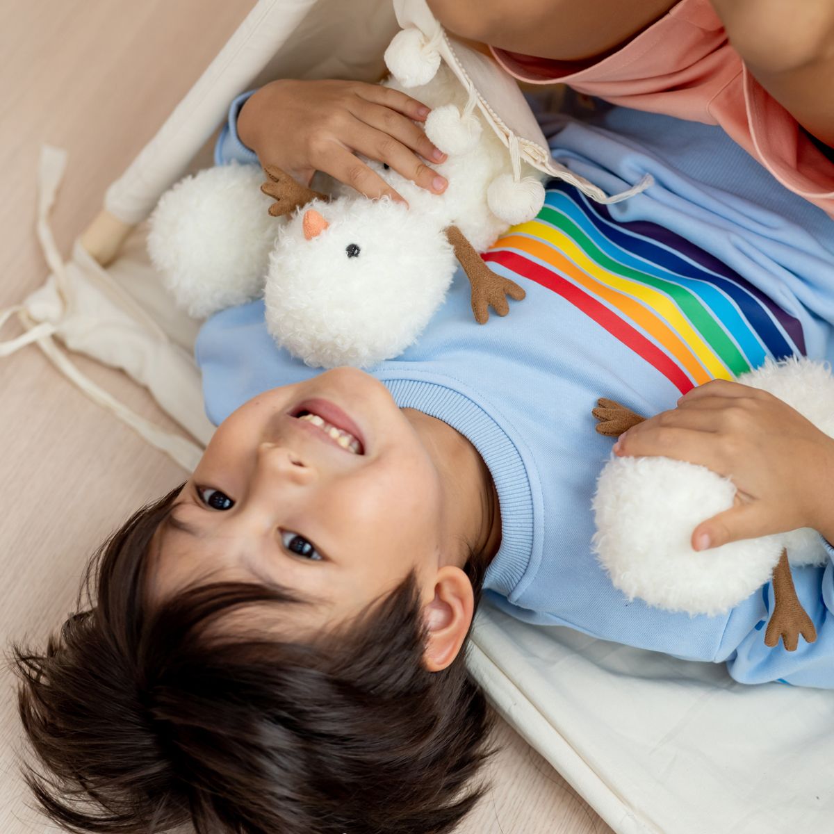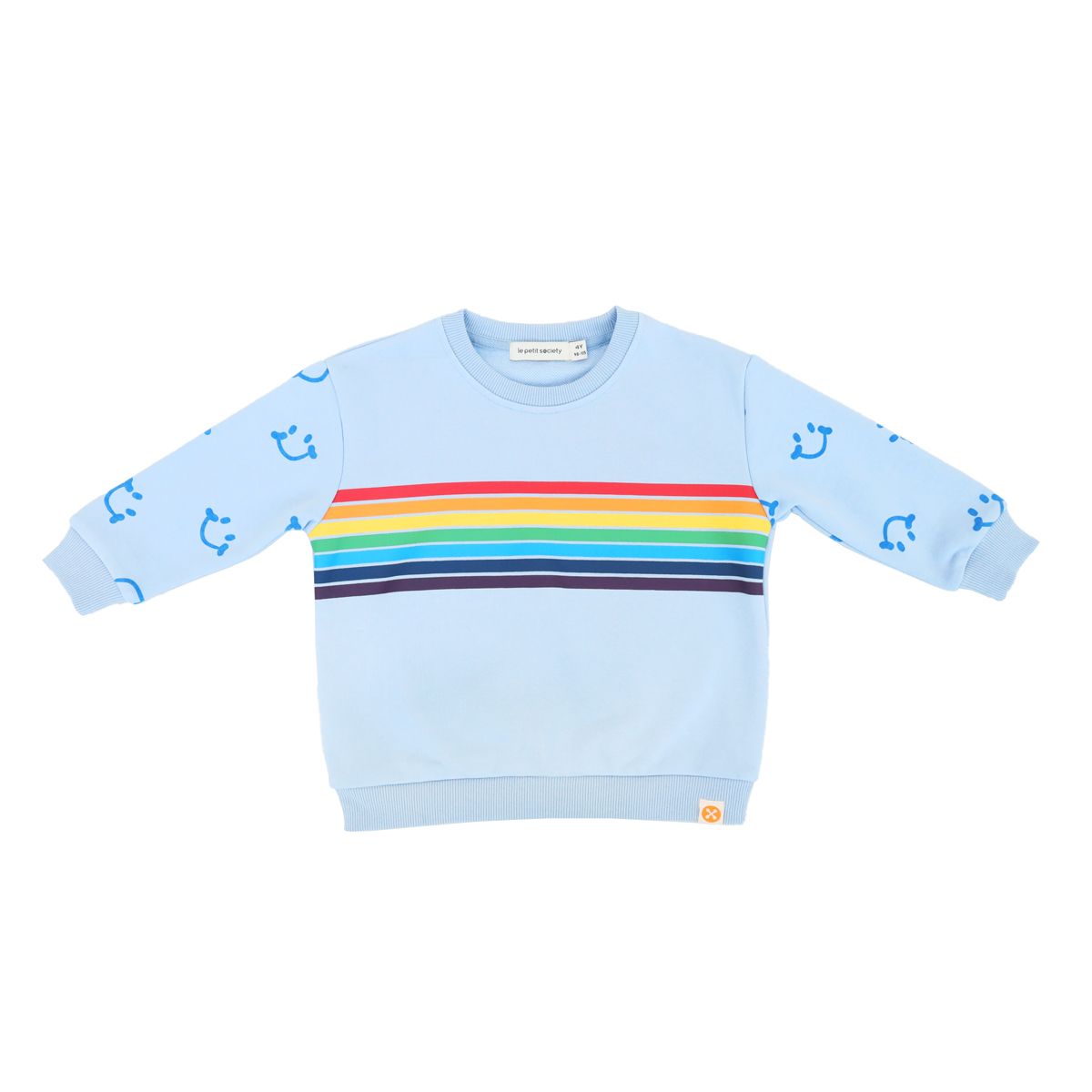 Brighten up your child’s day with the Rainbow Series Pullover in Baby Blue! This adorable pullover combines comfort, style, and a touch of whimsy to create the perfect addition to any kid’s wardrobe. The front showcases our signature rainbow print, while cheerful smiley faces adorn the sleeves, making every outfit fun and lively.